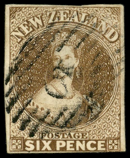 1857, Queen Victoria "Chalon Head", 6d brown, imperf (Scott 9), unwatermarked, single, Fine to Very Fine. SG 13; £300 ($380). Scott $325. (Image)