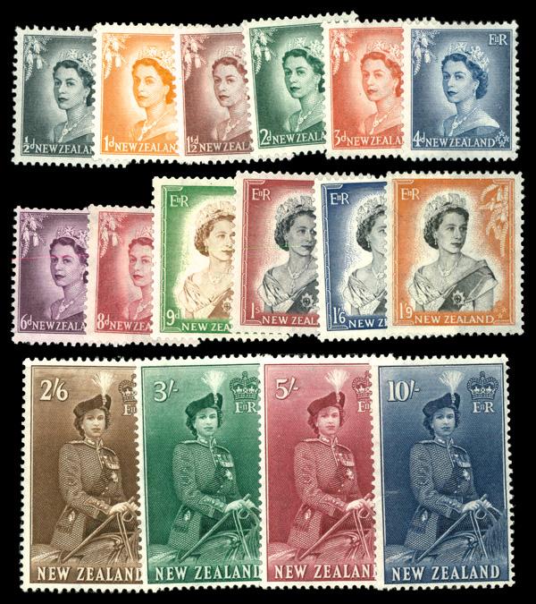 1953-57, Queen Elizabeth (Scott 288-301), complete set of singles, o.g., never hinged. Scott $180. (Image)