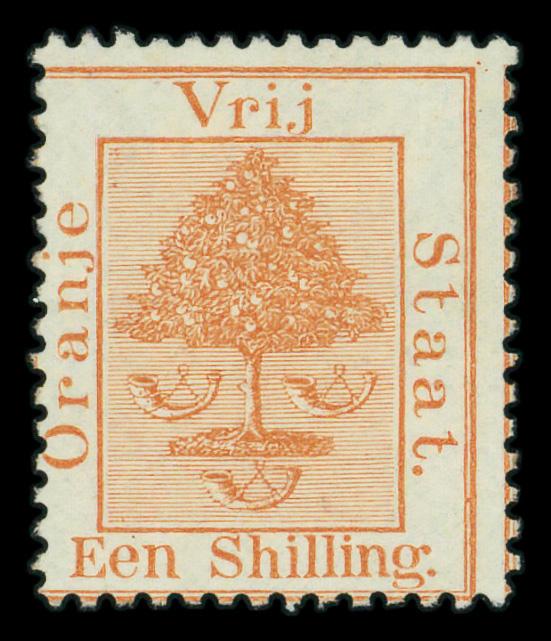 1868, 1sh orange buff Orange Tree (Scott 10a), o.g., hinge remnant, Fine. Scott $110. (Image)