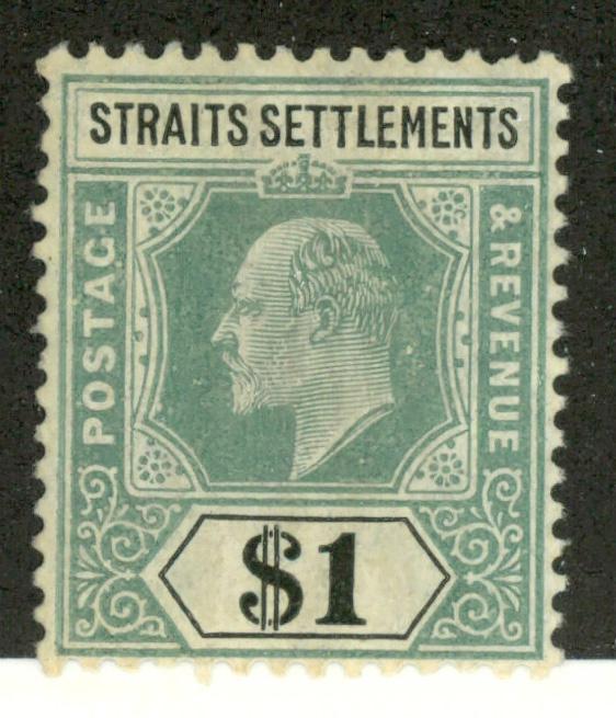 1905, King Edward VII, $1 dull green & black (Scott 123), ordinary paper, watermarked Multiple Crown CA, single, o.g., hinged, Fine to Very Fine. SG 136. Scott $75. (Image)