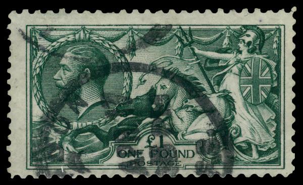 1913, King George V "Seahorse", Waterlow printing, £1 green (Scott 176), single, Fine to Very Fine. SG 403. Scott $1,400. (Image)