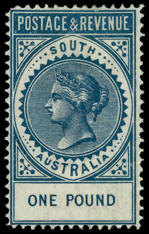 1886, Queen Victoria "Postage & Revenue" high value, £1 blue, perf 11½-12½ (Scott 85), o.g., hinge remnants, Fine. SG 199a. Scott $525. (Image)