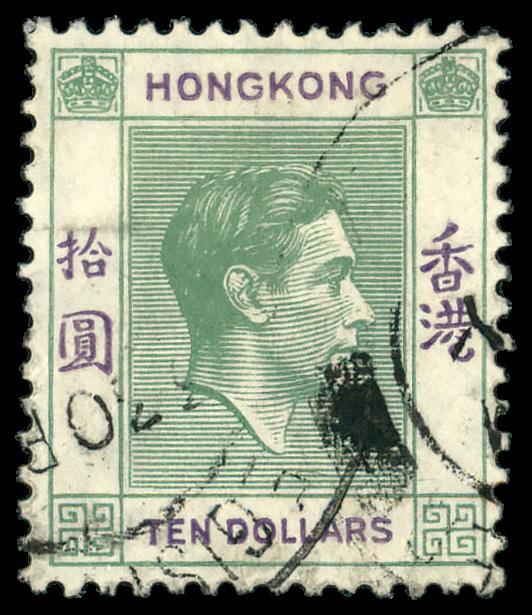 1938, King George VI, $10 green & violet (Scott 166), single, Fine to Very Fine. SG 161. Scott $130. (Image)