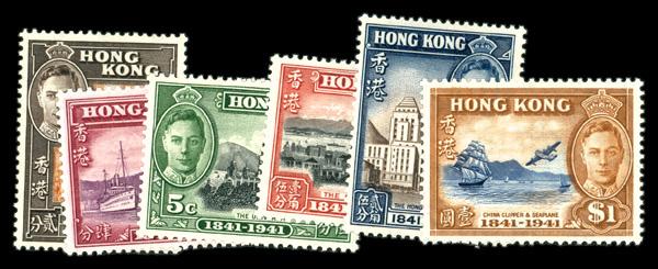 1941, Centenary of British Occupation complete (Scott 168-173), complete set of singles, o.g., never hinged, Fine to Very Fine. SG 163/168. Scott $80. (Image)