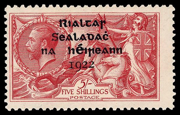 1922, Thom Provisional Govt. overprint on King George V "Seahorse", 5s rose carmine (Scott 37), o.g., never hinged, Fine to Very Fine. SG 45. Scott $525. (Image)