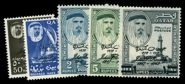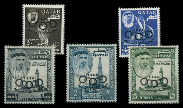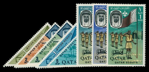 1965, Honoring Qatar Boy Scouts complete (Scott 53-60), complete set of singles, o.g., never hinged, Fine to Very Fine. Scott $50. (Image)