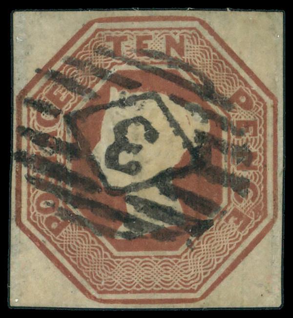 1848, Queen Victoria (embossed), 10d brown (Scott 6), single, Fine to Very Fine. SG 57. Scott $1,500. (Image)