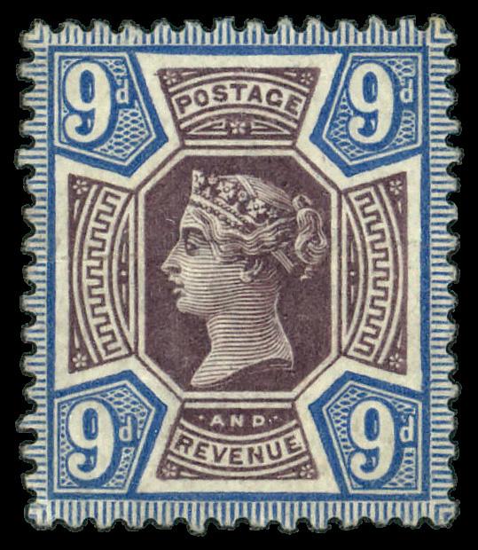 1887, Queen Victoria Jubilee, 9d dull purple & blue (Scott 120), single, o.g., lightly hinged, Fine to Very Fine. SG 209. Scott $78. (Image)