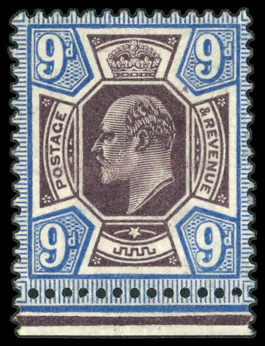 1902, King Edward VII, De La Rue printing, 9d dull purple & ultramarine (Scott 136), single, o.g., lightly hinged, Fine to Very Fine. SG 250. Scott $100. (Image)
