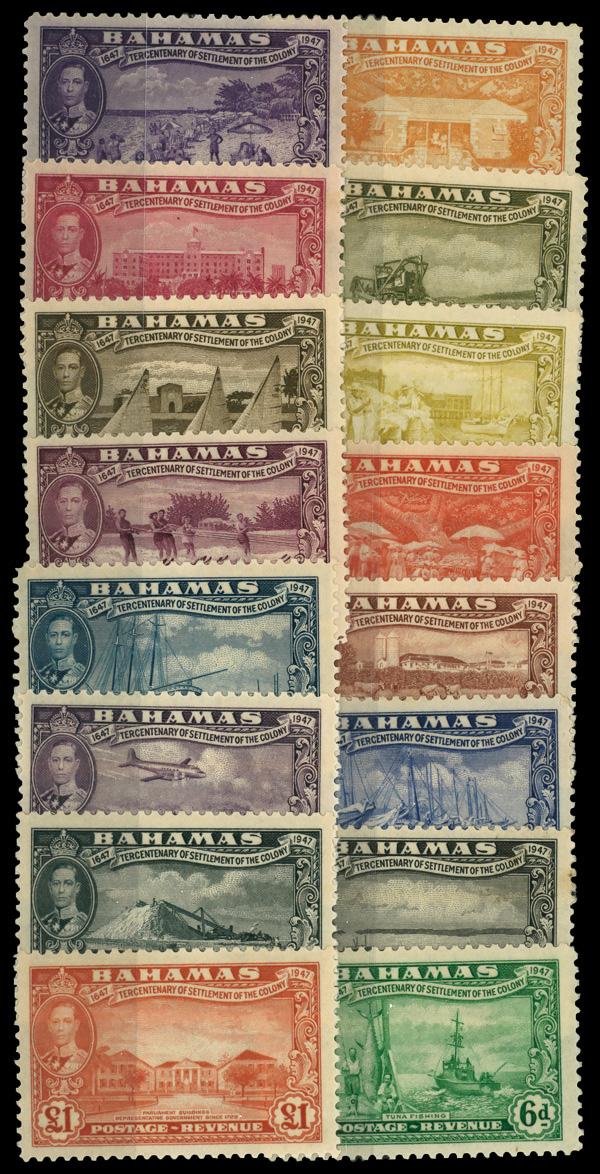 1948 Eleuthera Tercentenary complete (Scott 132-147), complete set of singles, o.g., never hinged, Fine to Very Fine. SG 178/93. Scott $85. (Image)