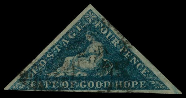 1863-64, Triangular, De La Rue printing, 4d deep blue (Scott 13), single, Fine to Very Fine. SG 19. Scott $135. (Image)