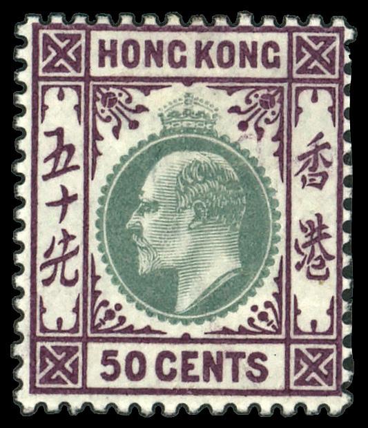 1904, King Edward VII, 50¢ green & magenta, ordinary paper (Scott 101), Multiple Crown CA watermark, single, o.g., hinged, Fine to Very Fine. SG 85. Yang 85. Scott $105. (Image)