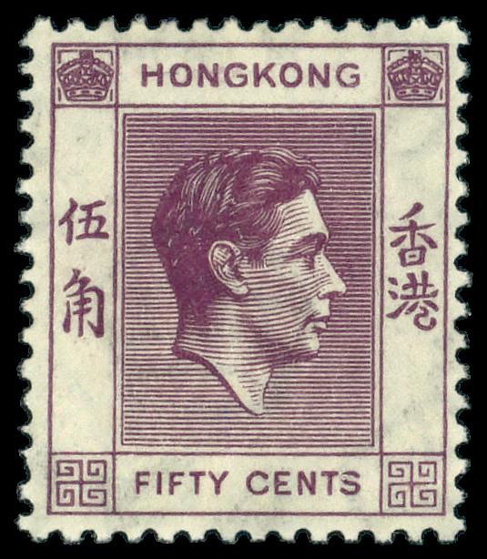 1938, King George VI, 50¢ purple, perf 14 (Scott 162), single, o.g., never hinged, Fine to Very Fine, 1938 first printing variety. SG 153. (Image)