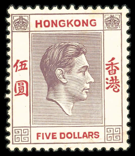 1938, King George VI, $5 dull lilac & scarlet (Scott 165), single, o.g., never hinged, Fine to Very Fine. SG 159. Scott $70. (Image)