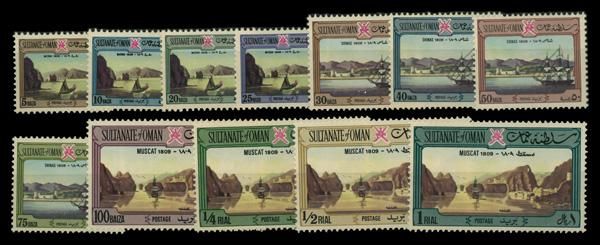 1972, Views of Muscat 5b-1r complete (Scott 139-150), complete set of singles, o.g., never hinged, Fine to Very Fine. Scott $213. (Image)