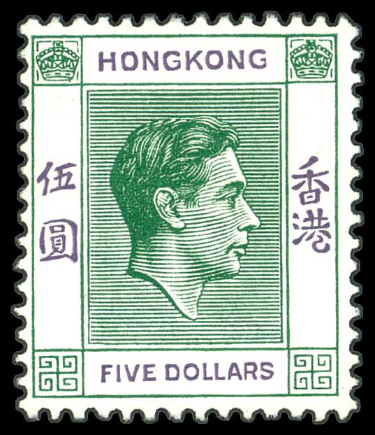 1947, King George VI, $5 yellowish green & violet, chalky paper (Scott 165A), single, o.g., never hinged, Fine to Very Fine. SG 160b. Scott $120. (Image)