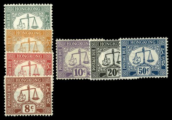 Postage Dues, 1938-63, 2¢-50¢ complete (Scott J6-J12), complete set of single, o.g., lightly hinged, Fine to Very Fine, missing Scott J7. SG D6a/12. Scott $86. (Image)