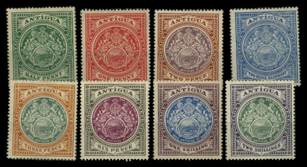 1908-17, Seal of the Colony, ½d to 2s complete, Crown CA watermark (Scott 31-38), set of 8, complete set of singles, o.g., hinged, Fine to Very Fine. SG 41/50. Scott $195. (Image)