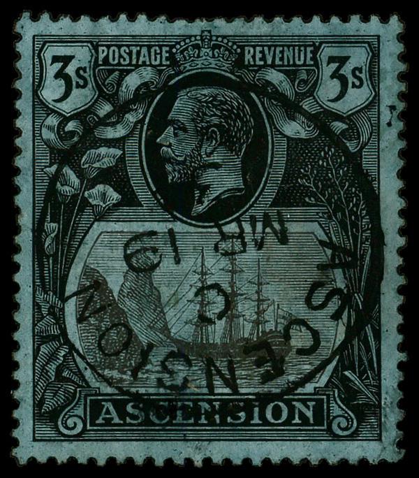 1924, Badge of the Colony, 3s gray black & black on blue (Scott 21), single, Fine to Very Fine. SG 20. Scott $110. (Image)