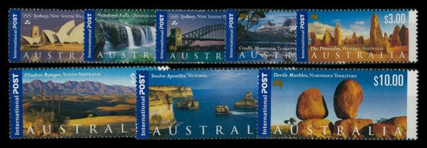 2000, Tourist Attractions 50c - $10 complete (Scott 1839-1846), complete set of singles, o.g., never hinged, Fine to Very Fine. Scott $44. (Image)