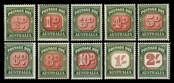 Postage Dues, 1958-60, ½d-2s complete (Scott J86-J95), complete set of singles, o.g., never hinged, Fine to Very Fine. SG D132-141. Scott $179. (Image)