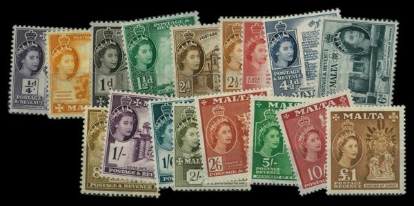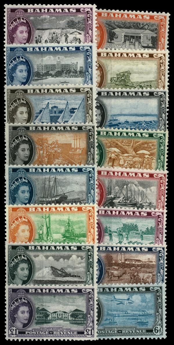 1954, Queen Elizabeth II Pictorials complete (Scott 158-173), complete set of singles, o.g., never hinged, Fine to Very Fine. SG 201/16. Scott $86. (Image)