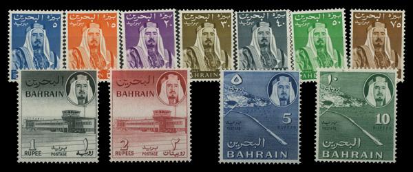 1964, Sheik Isa bin Sulman Al Khalifah pictorials complete (Scott 130-140), complete set of singles, o.g., never hinged, Fine to Very Fine. Scott $56. (Image)