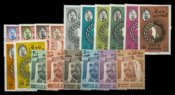 1976-2000, Sheik Isa bin Sulman Al Khalifah pictorials complete (Scott 225-240), complete set of singles, o.g., never hinged, Fine to Very Fine. Scott $113. (Image)