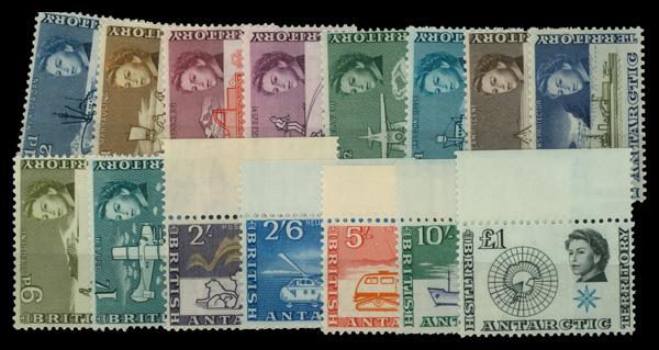 1960, Queen Elizabeth II Pictorials, ½d to £1 complete (Scott 147-160), complete set of singles, o.g., never hinged, Fine to Very Fine. SG 160/173. Scott $83. (Image)