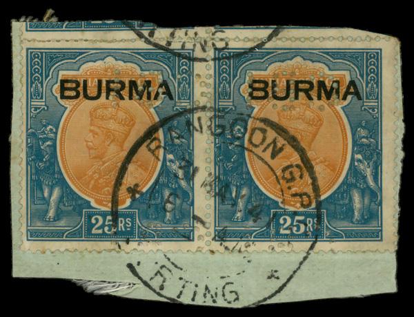 1922-1923, King George V 10r carmine & green overprint (Scott 15), single, o.g., hinged, Fine to Very Fine. Scott $275. (Image)