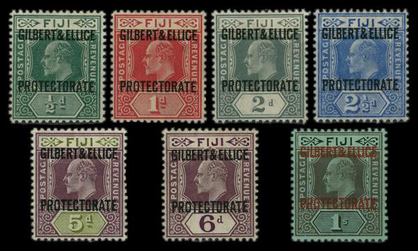 1911 "Protectorate" overprints on Fiji, ½d-1s complete (Scott 1-7), complete set of singles, o.g., hinged, Fine to Very Fine. SG 1/7. Scott $222. (Image)