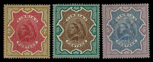 1895, Queen Victoria "Widow's Weeds", 2r-5r complete (Scott 50-52), complete set of single, o.g., lightly hinged, Fine to Very Fine. SG 107/9. Scott $170. (Image)