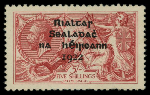 1922, Thom Provisional Govt. overprint on King George V "Seahorse", 5s rose carmine (Scott 37), single, o.g., lightly hinged, Fine to Very Fine. SG 45. Scott $300. (Image)