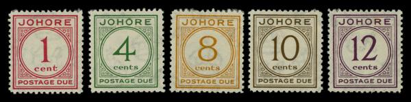 Postage Dues, 1938, 1¢-12¢ complete (Scott J1-J5), complete set of singles, o.g., lightly hinged, Fine to Very Fine. SG D1/5. Scott $228. (Image)