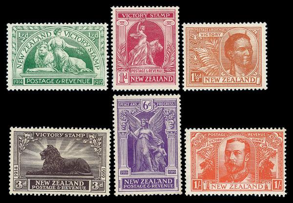 1920 Victory complete (Scott 165-170), set of 6, o.g., lightly hinged or hinge remnant, Fine to Very Fine. SG 453/8. Scott $91. (Image)