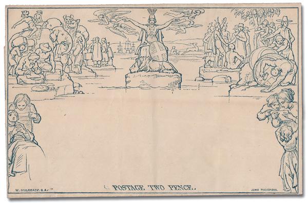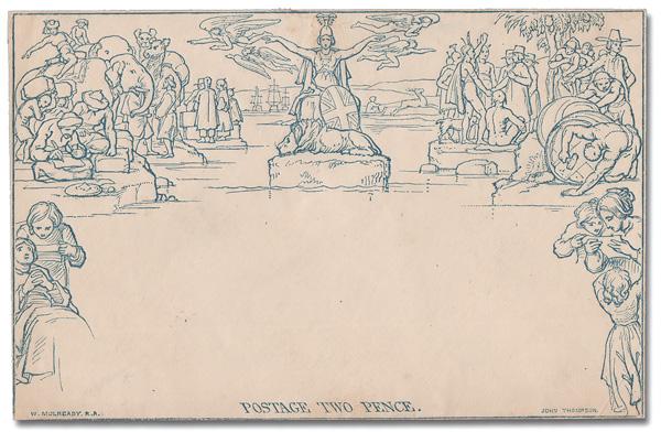 1840, Mulready Letter Sheet, 2d blue (Scott U4), Stereo a104, faint horizontal file fold, Fine to Very Fine. SG ME3; £425 ($570). Scott $475. (Image)
