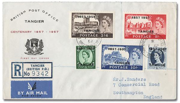 B.C.O.F., 1946-47, ½d to 5s complete (Scott M1-M7), tied by "AUST UNIT POSTAL STN/453, 8MY47" c.d.s.s—the First Day of issue of the 6d-5s values—on a cover addressed to the 130th Australian General Hospital, B.C.O.F. Etajima, Island, Japan, minor wrinkles and small edge tear at the bottom, Fine to Very Fine. A rare FDC to an unusual destination. SG J1-7. (Image)