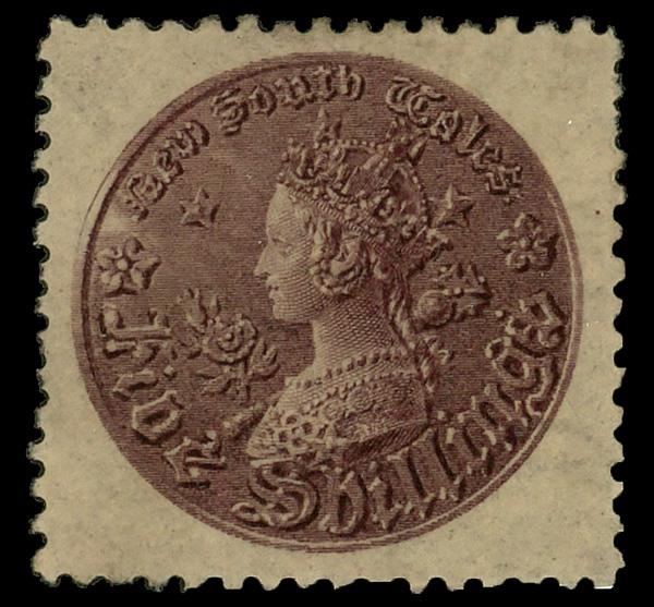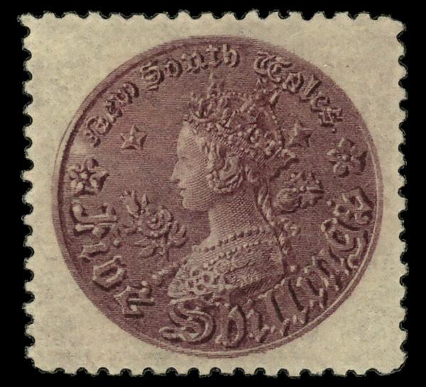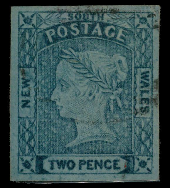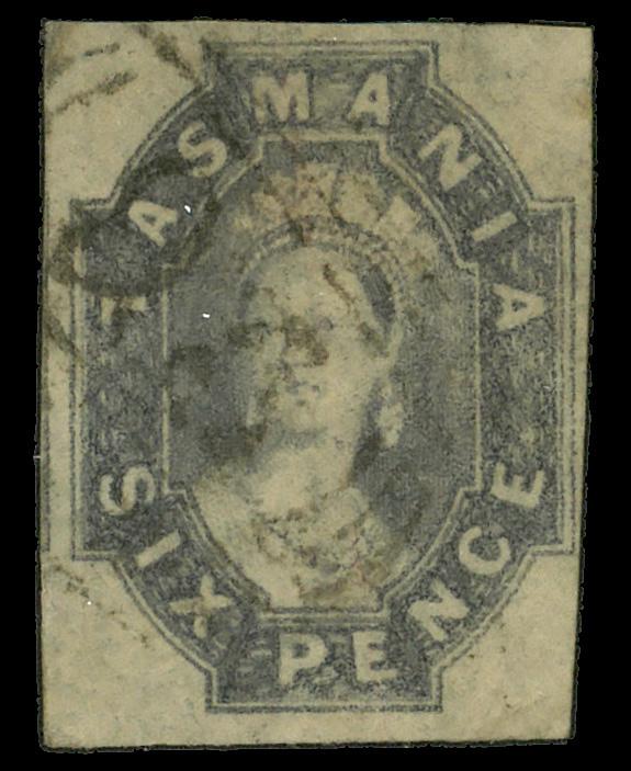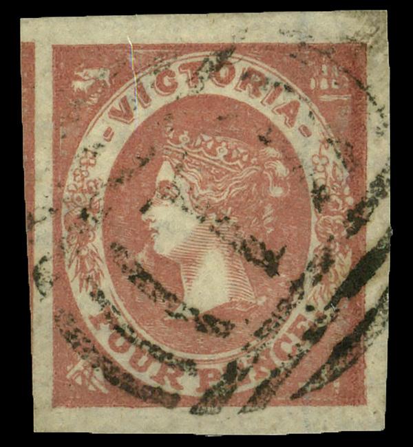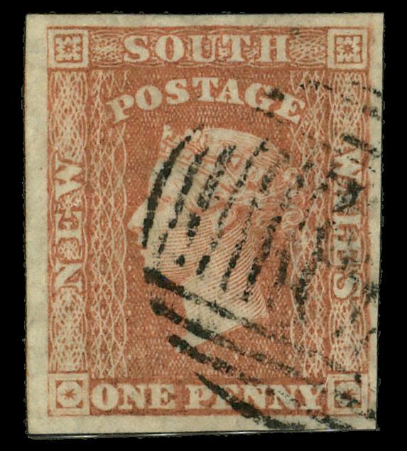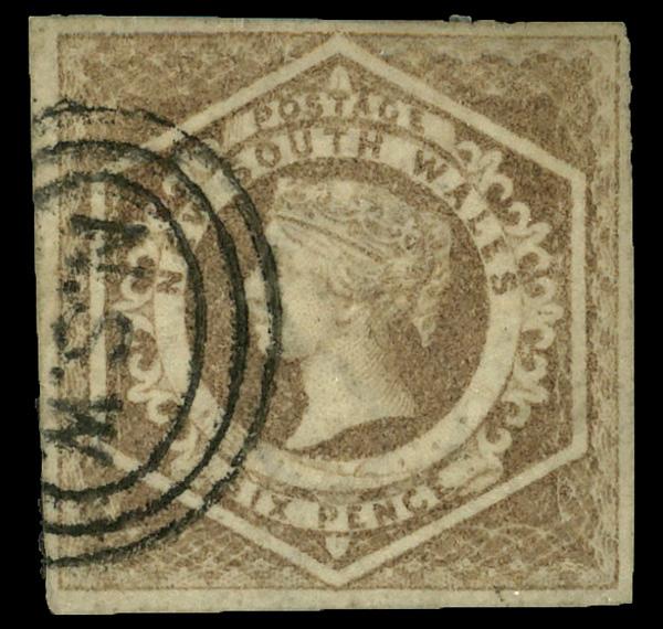 1859, Queen Victoria, 6d grayish brown, watermark error (Scott 28a), watermarked "8" instead of "6", single, A nice 4 margin copy with a 3 ring oval NSW cancel., Fine to Very Fine. SG 96a. Scott $160. (Image)