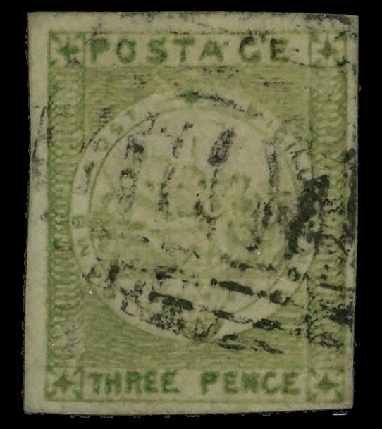 1852, Queen Victoria, 3d dull yellow green, medium paper (Scott 17d), single, Fine to Very Fine. SG 67. Scott $250. (Image)