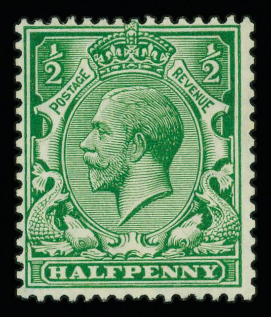 1913, King George V coil, ½d bright green, Royal Cypher Multiple watermark (Scott 177), single, o.g., hinge remnant, Fine. SG 397. Scott $160. (Image)