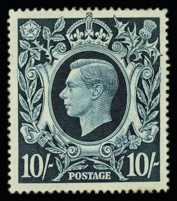 1939, King George VI, 10s dark blue (Scott 251), single, o.g., never hinged, Very Fine to Extremely Fine. SG 478. Scott $275. (Image)