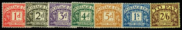 Postage Dues, 1936-37, ½d to 2s6d complete, E 8 R watermark (Scott J18-J25), complete set of single, o.g., lightly hinged, Fine to Very Fine. SG D19/26. Scott $168. (Image)