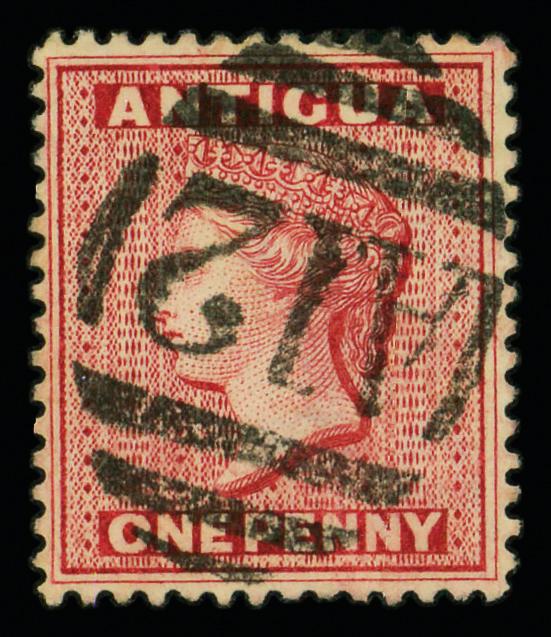 1884, Queen Victoria, 1d carmine red, Crown CA watermark, perf. 14 (Scott 18), single, Must read the foot note after St. Christopher Scott 23. This stamp was used in St. Christopher in 1890. The Cacel tells the useage for the time period., Fine to Very Fine. SG 25. Scott $140. (Image)