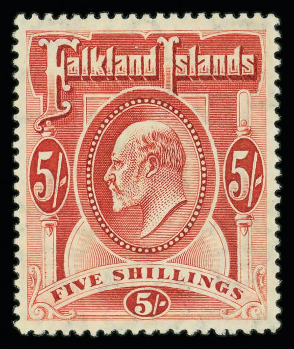 1904, King Edward VII, 5s red (Scott 29), single, o.g., lightly hinged, Fine to Very Fine. SG 50. Scott $240. (Image)