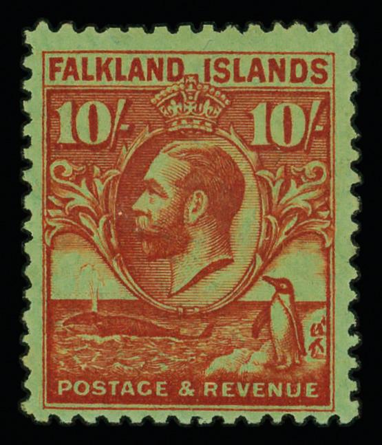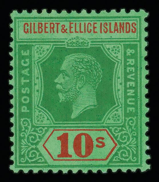 1908, Badge of the Colony, 10s green & red on green (Scott 78), single, o.g., hinge remnants, Fine to Very Fine. SG 83. Scott $160. (Image)