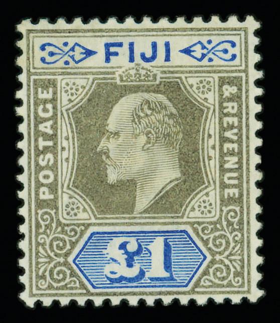 1903, King Edward VII, £1 gray black & ultramarine (Scott 69), watermarked Crown CA, single, o.g., never hinged, Very Fine. SG 114. Scott $400. (Image)