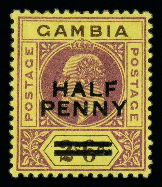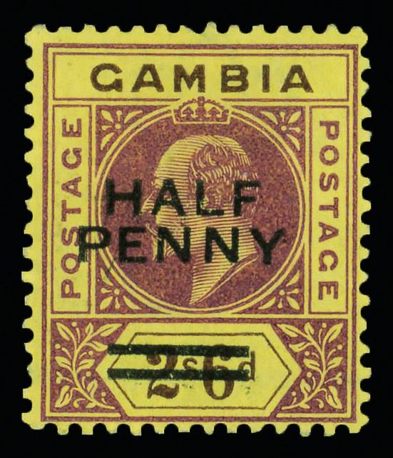 1906, King Edward VII, ½d on 2s6d purple & brown on yellow, 5mm spacing (Scott 65), single, o.g., invisibly hinged, Very Fine. SG 69. Scott $58. (Image)