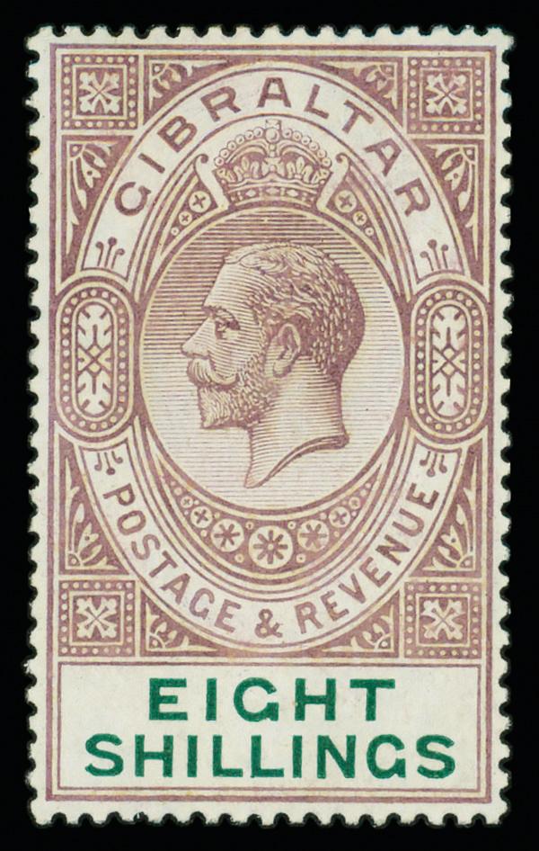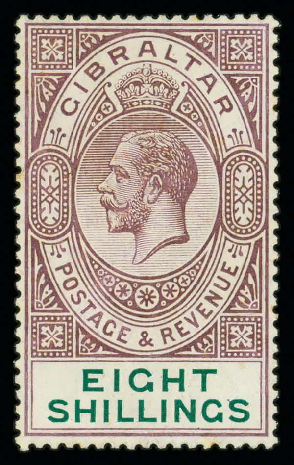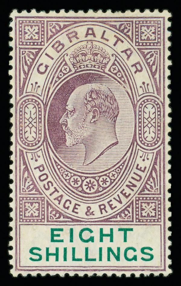 1911, King Edward VII, 8s purple & green, Multiple Crown CA watermark (Scott 63), single, o.g., lightly hinged, Very Fine. SG 74. Scott $250. (Image)