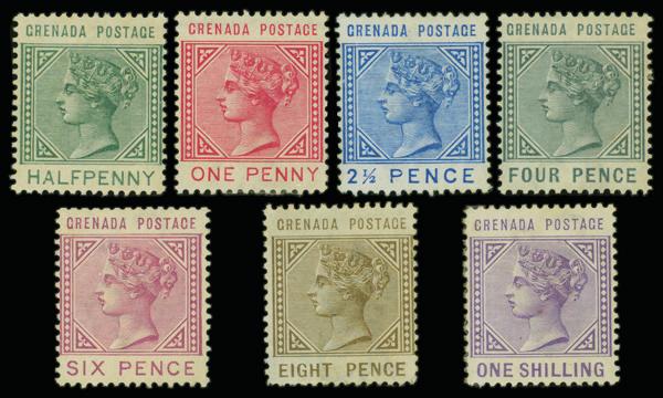 1883, ½d-1s Queen Victoria complete (Scott 20-26), complete set of singleS, o.g., hinge remnant, Fine to Very Fine. SG 30/6. Scott $298. (Image)