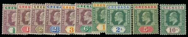 1902, King Edward VII, ½d-10s complete (Scott 48-57), complete set of singles, o.g., lightly hinged or hinge remnant, Very Fine to Extremely Fine. SG 57/66. Scott $305. (Image)
